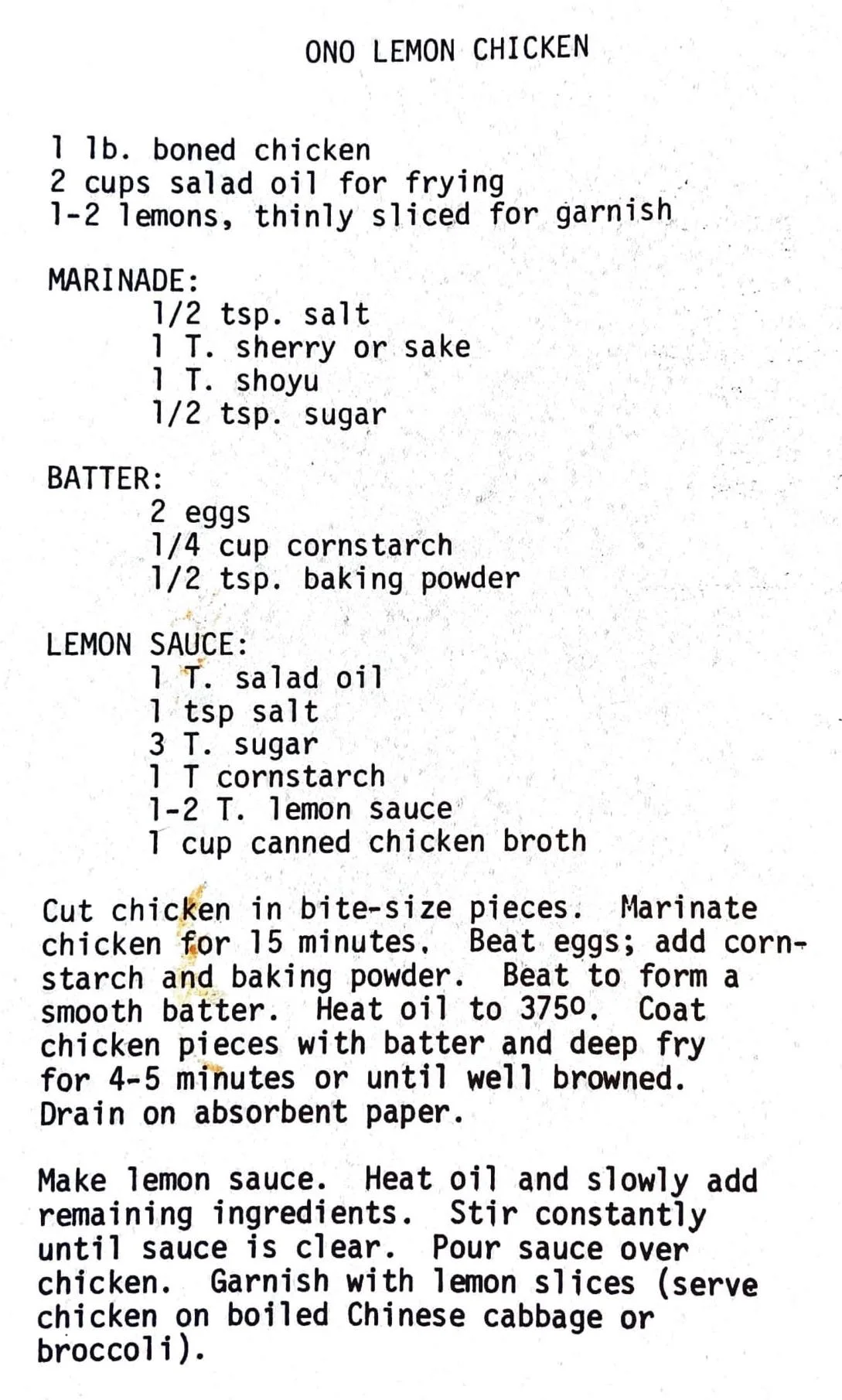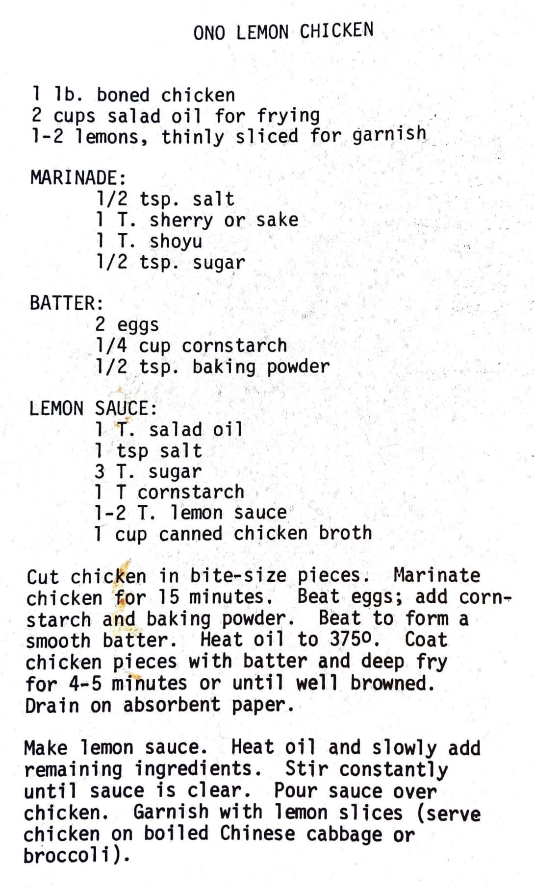 Ono Lemon Chicken