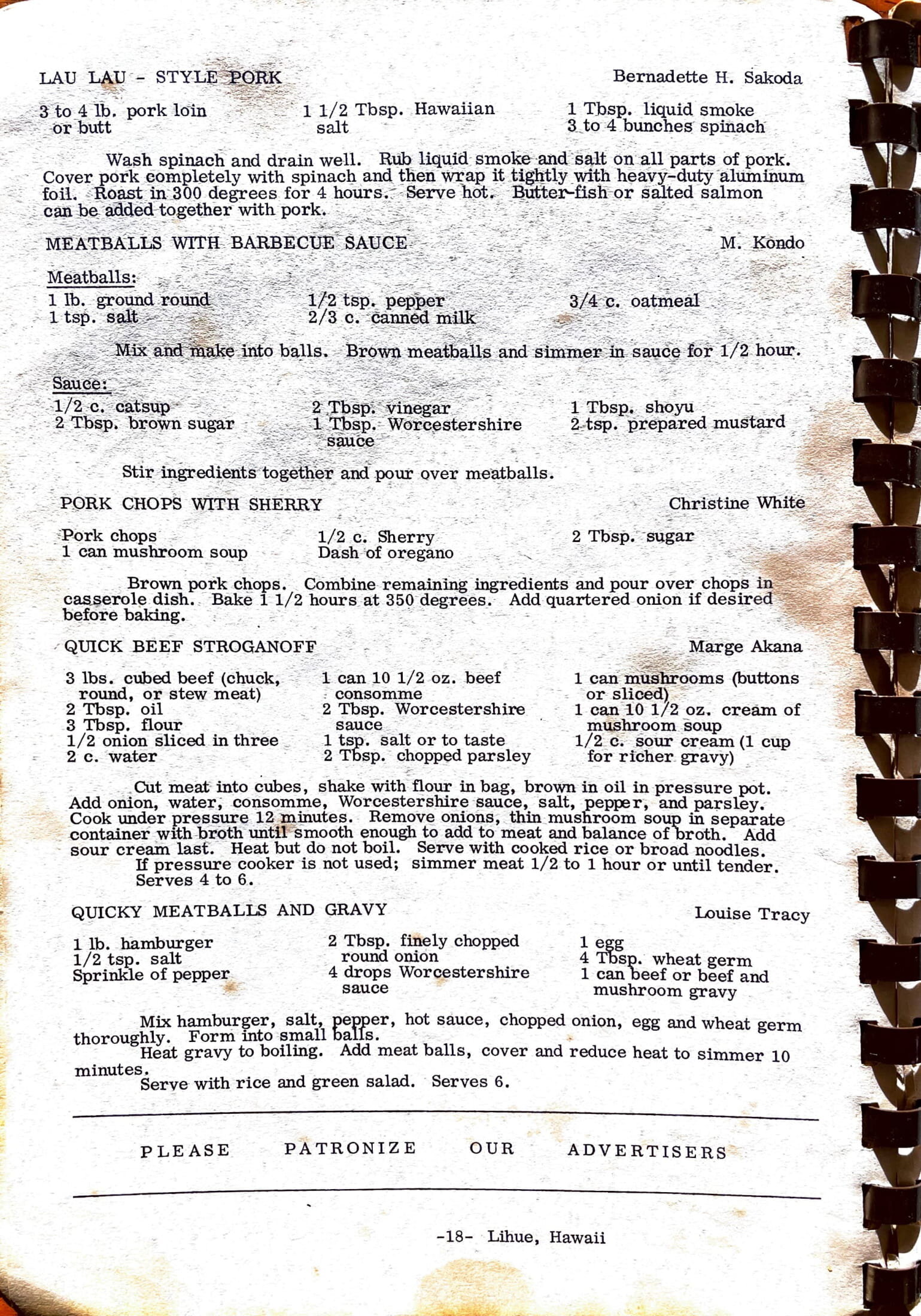 Brown pork chops. Combine remaining ingredients and pour over chops in casserole dish. Bake 1-1/2 hours at 350 F. Add quartered onion if desired before baking.