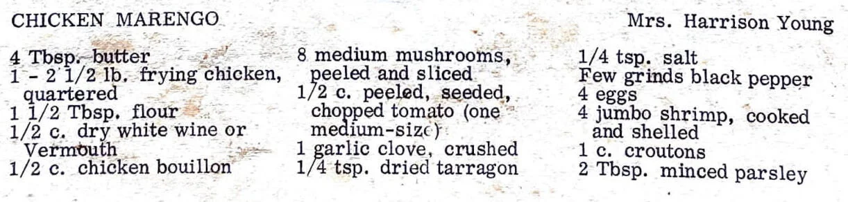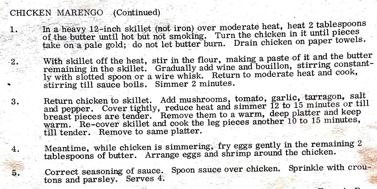 6 Pork Chops Salt and Pepper 1 can peas 1 can tomato soup Brown chops and season. Arrange in buttered casserole dish and pour the peas over them. Season and add the can of tomato soup. Cover and bake in moderate oven (375 F) for 50 minutes.