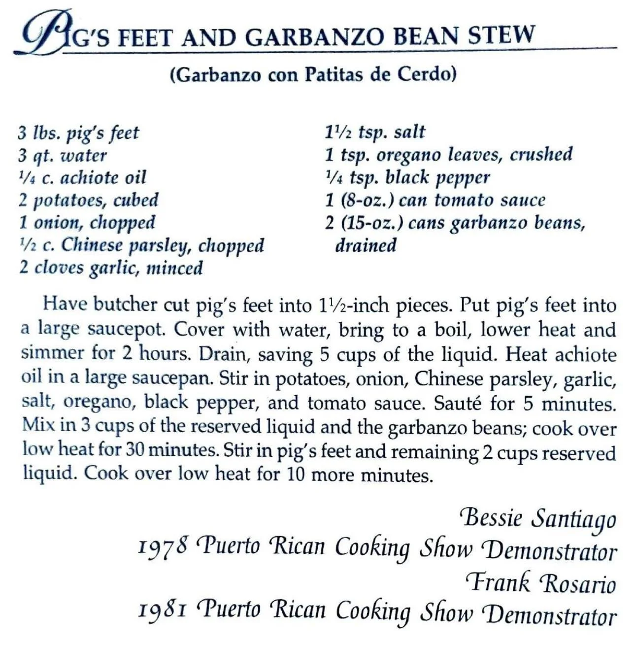 Pig’s Feet and Garbanzo Bean Stew (Garbanzo con Patitas de Cerdo)