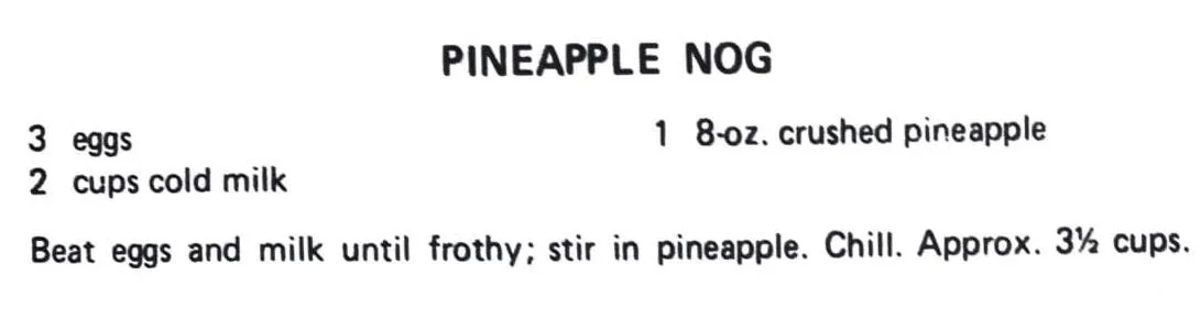 Beat eggs and milk until frothy; stir in pineapple. Chill. Approx. 3-1/2 cups.