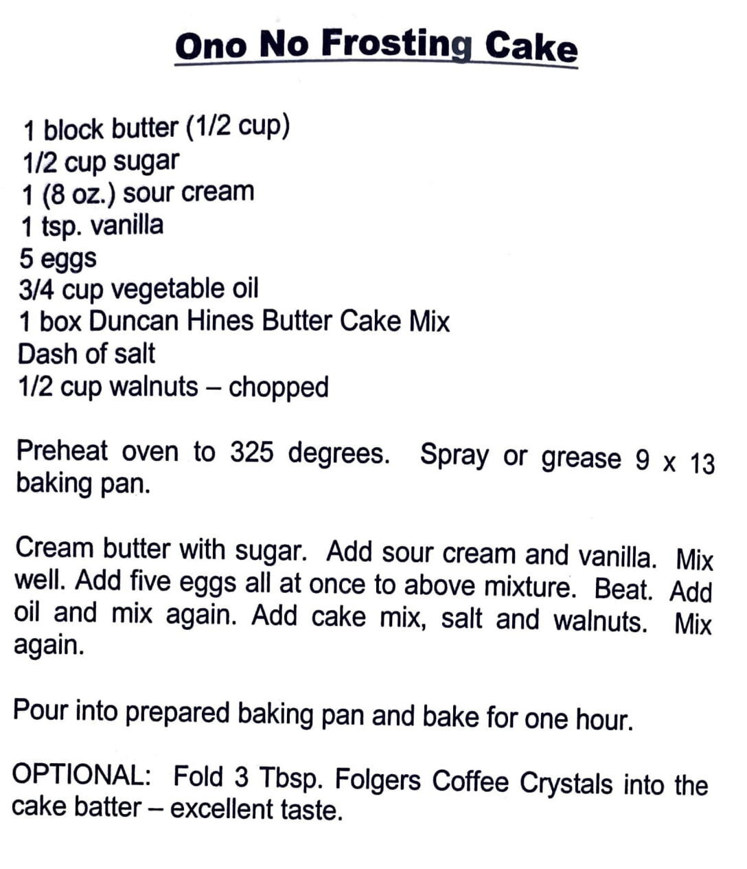 Ono No Frosting Cake