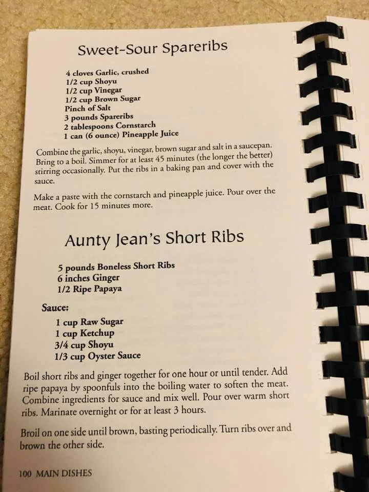 Boil short ribs and ginger together for one hour or until tender. Add ripe papaya by spoonfuls into boiling water to soften the meat. Combine ingredients for sauce and mix well. Pour over warm short ribs. Marinate overnight or for at least 3 hours.