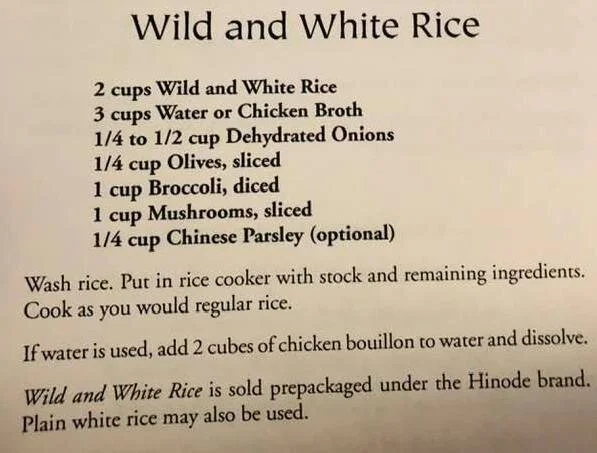 Wild and White Rice is sold prepackaged under the Hinode brand. Plain white rice may also be used.