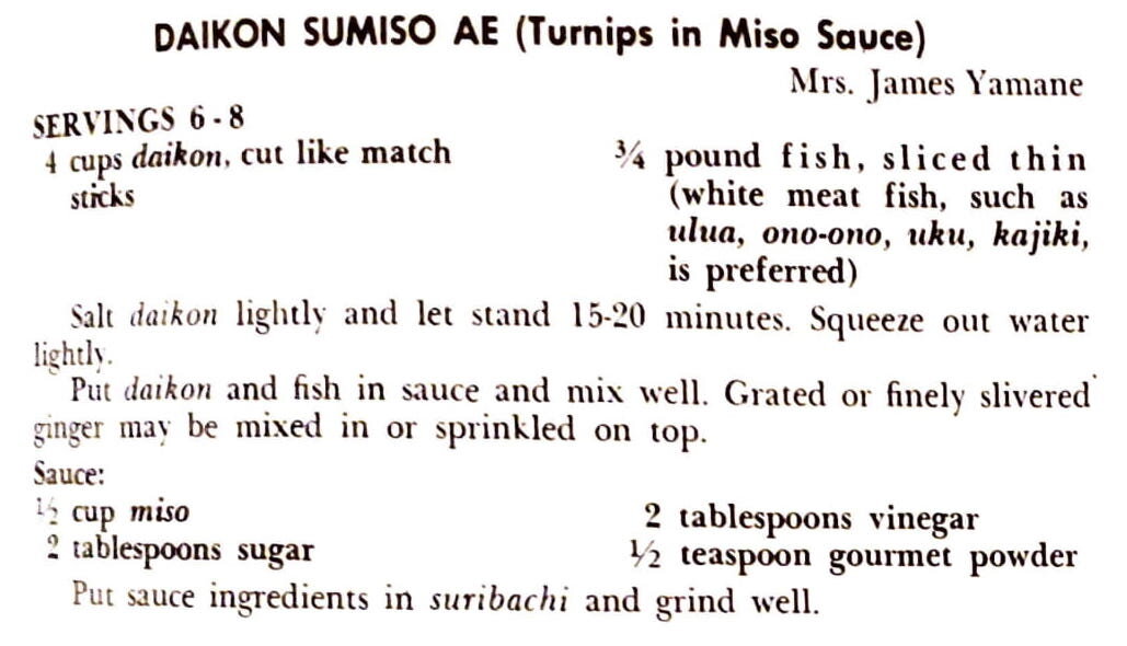Daikon Sumiso Ae ( Turnips in Miso Sauce)