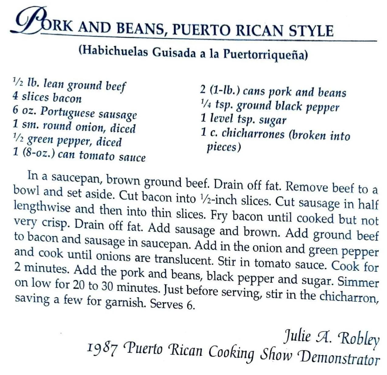 Pork and Beans, Puerto Rican Style (Habichuelas Guisada a la Puertorriqueña)