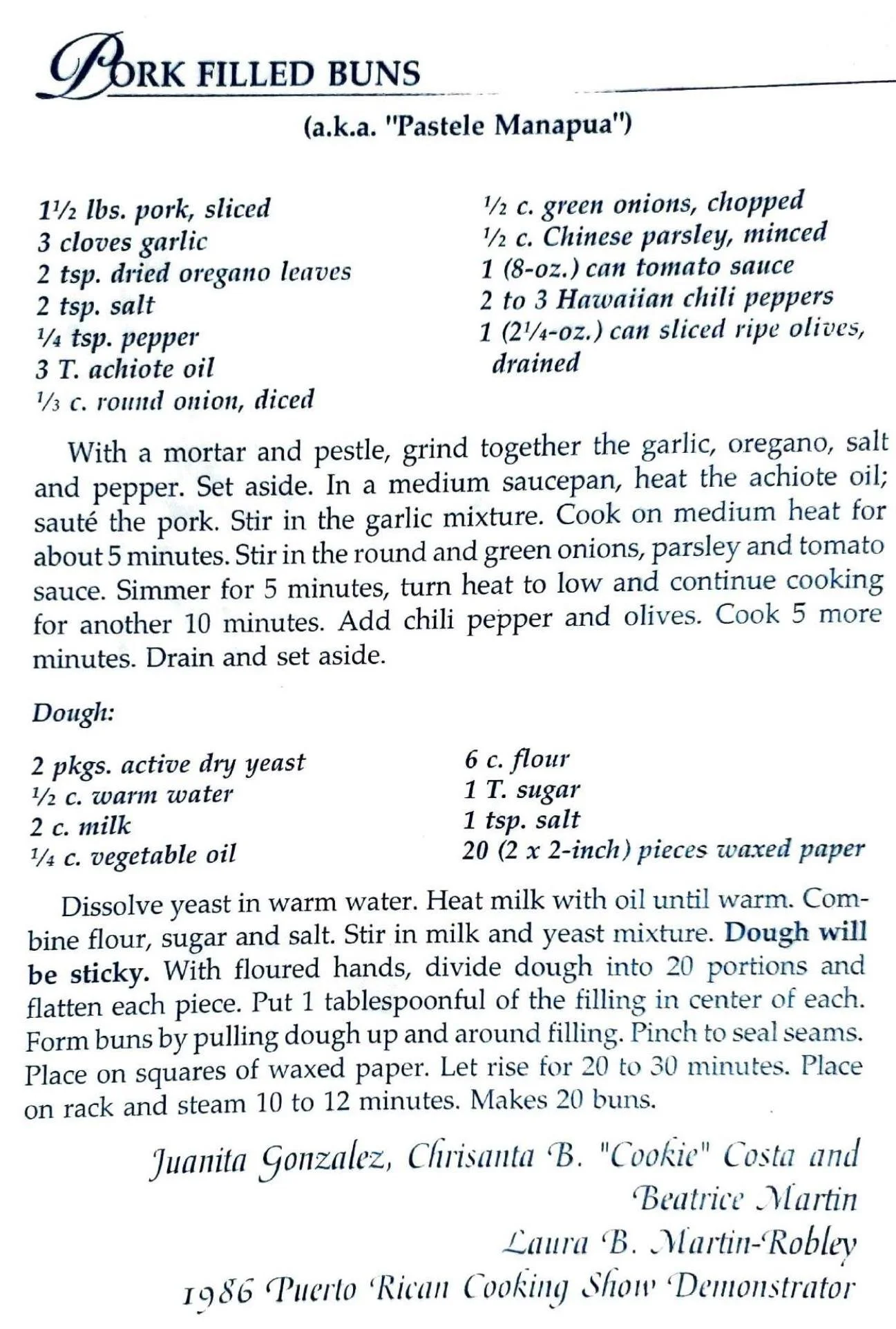 1986 Puerto ‘Rican Cooking Shon Demonstrator