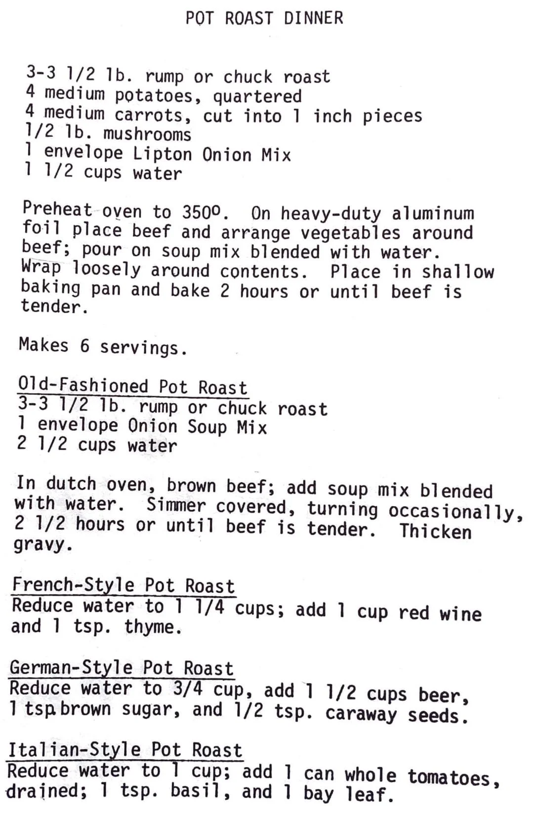 Pot Roast Dinner