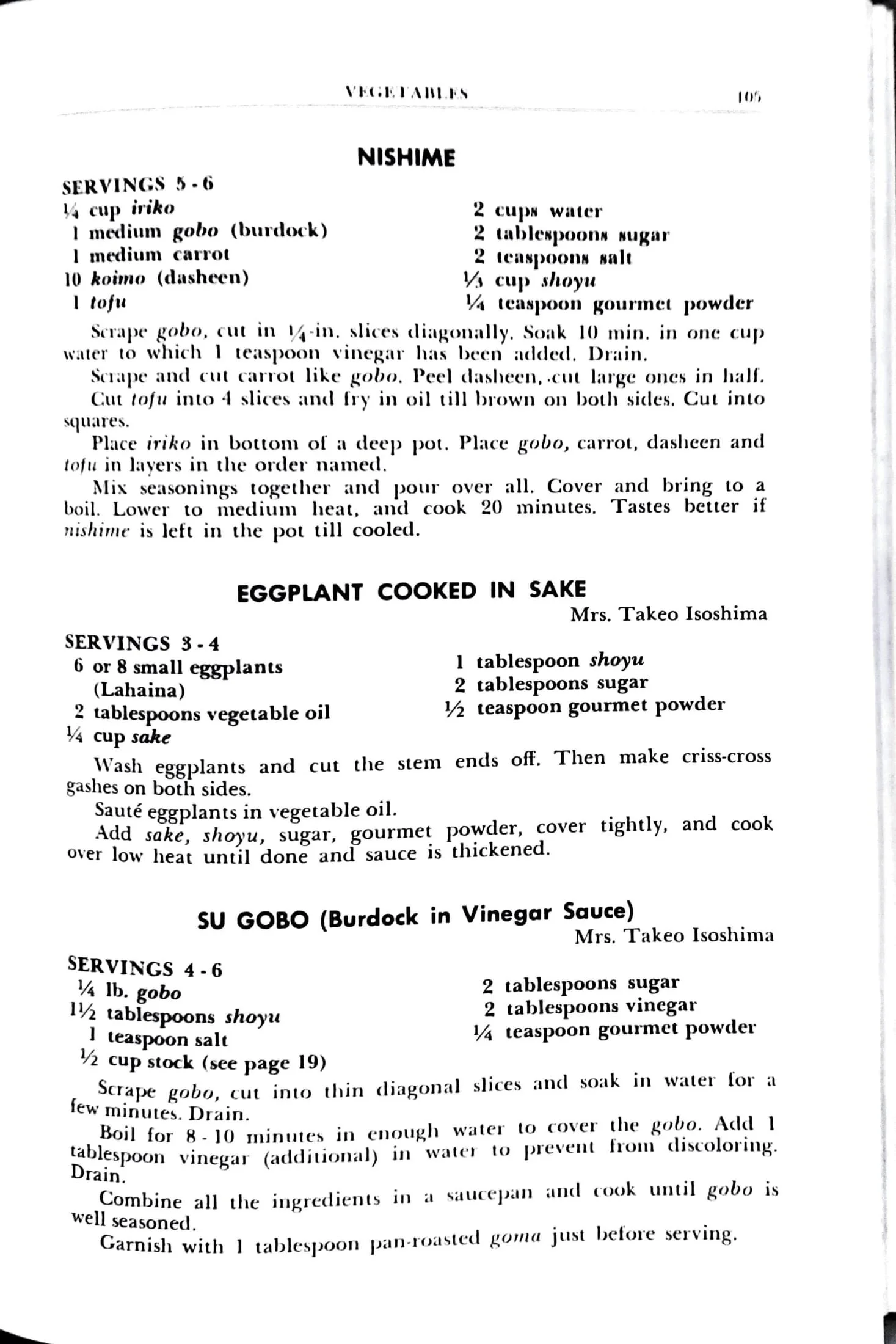 SERVINGS 4-6 1 bunch horenso (winter spinach) 1 can crabmeat Cook horenso till tender in boiling water. Drain and spread on “su” or bamboo mat. Place shredded crabmeat in the center and roll as in making norimaki (see page 47). Makes 2 rolls. Better to leave rolls in refrigerator for a few hours. Cut diagonally…