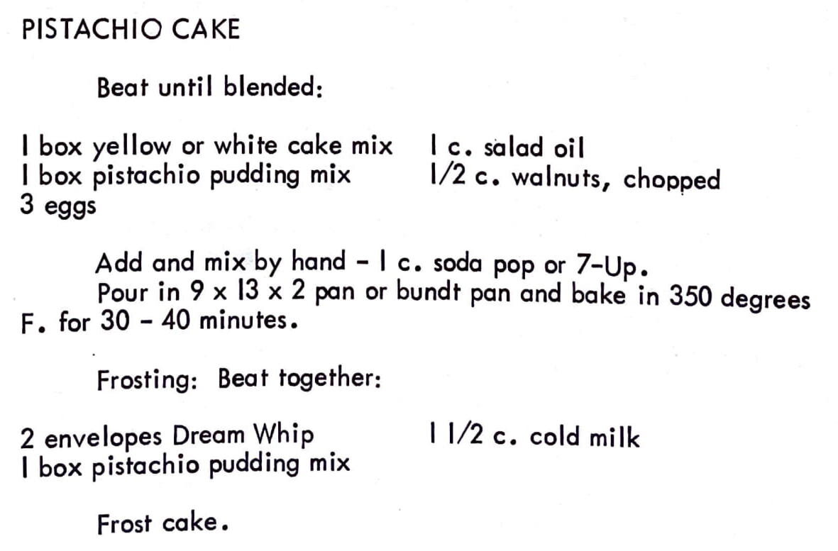 2 blocks butter5 tbsp. crisco1-1/2 cups sugar3 eggs1 flat can crushed pineapple3 cups flour3 tsp. baking powder1 cup sour milk1/2 tsp. baking sodaDrop of almond or lemon extract Cream butter and sugar until fluffy. Add eggs, one at a time and beat well. Add pineapple mixed with soda. (Mix this Just before you add to…