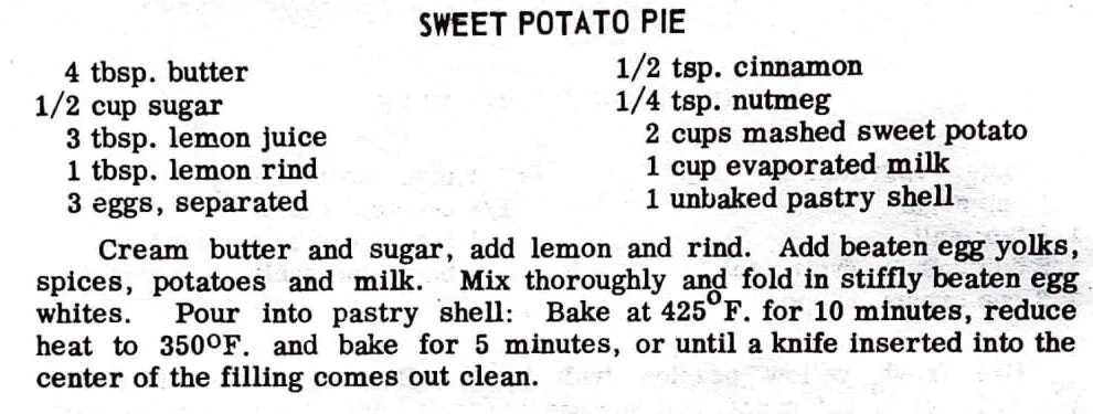 Cream butter and sugar, add lemon and rind. Add beaten egg yolks, spices, potatoes and milk. Mix thoroughly and fold in stiffly beaten egg whites. Pour into pastry shell: Bake at 425 F. for 10 minutes, reduce heat to 350 F. and bake for 5 minutes, or until a knife inserted into the center of the filling comes out clean.