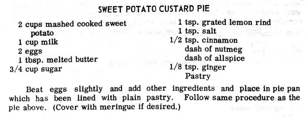 Deal eggs slightly and add other ingredients and place in pie pan which has been lined with plain pastry. Follow same procedure as the pie above. (Cover with meringue ff desired.)