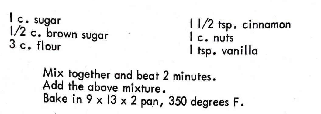 1 pkg. yellow cake mix 1 pkg. orange or lemon jello 3 tbsp. flour 4 eggs 1/2 tsp. baking powder 3/4 cup apricot nectar Mix all ingredients in mixer and beat at moderate speed for four minutes. Grease tube pan and bake for 1 hour at 350 degrees. Instead of apricot nectar, 1 cup apricot…