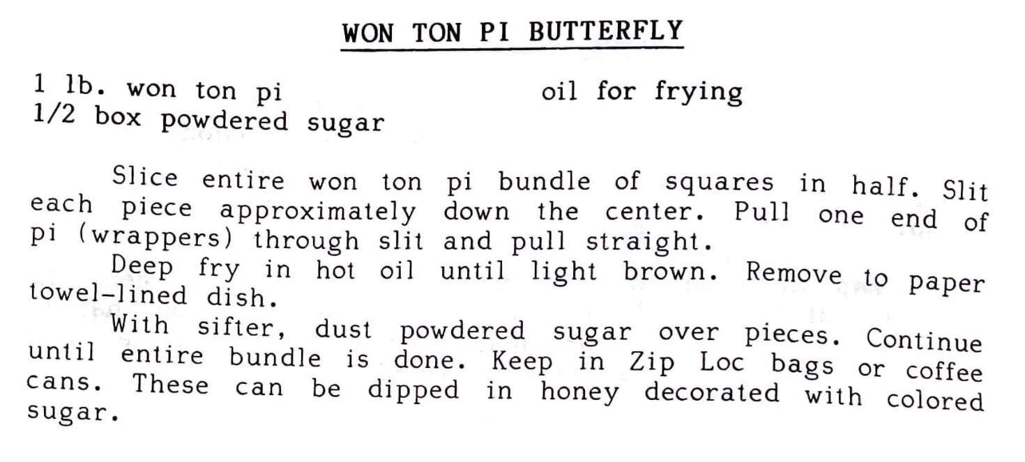 With sifter, dust powdered sugar over pieces. Continue until entire bundle is done. Keep in Zip Loc bags or coffee cans. These can be dipped in honey decorated with colored sugar.