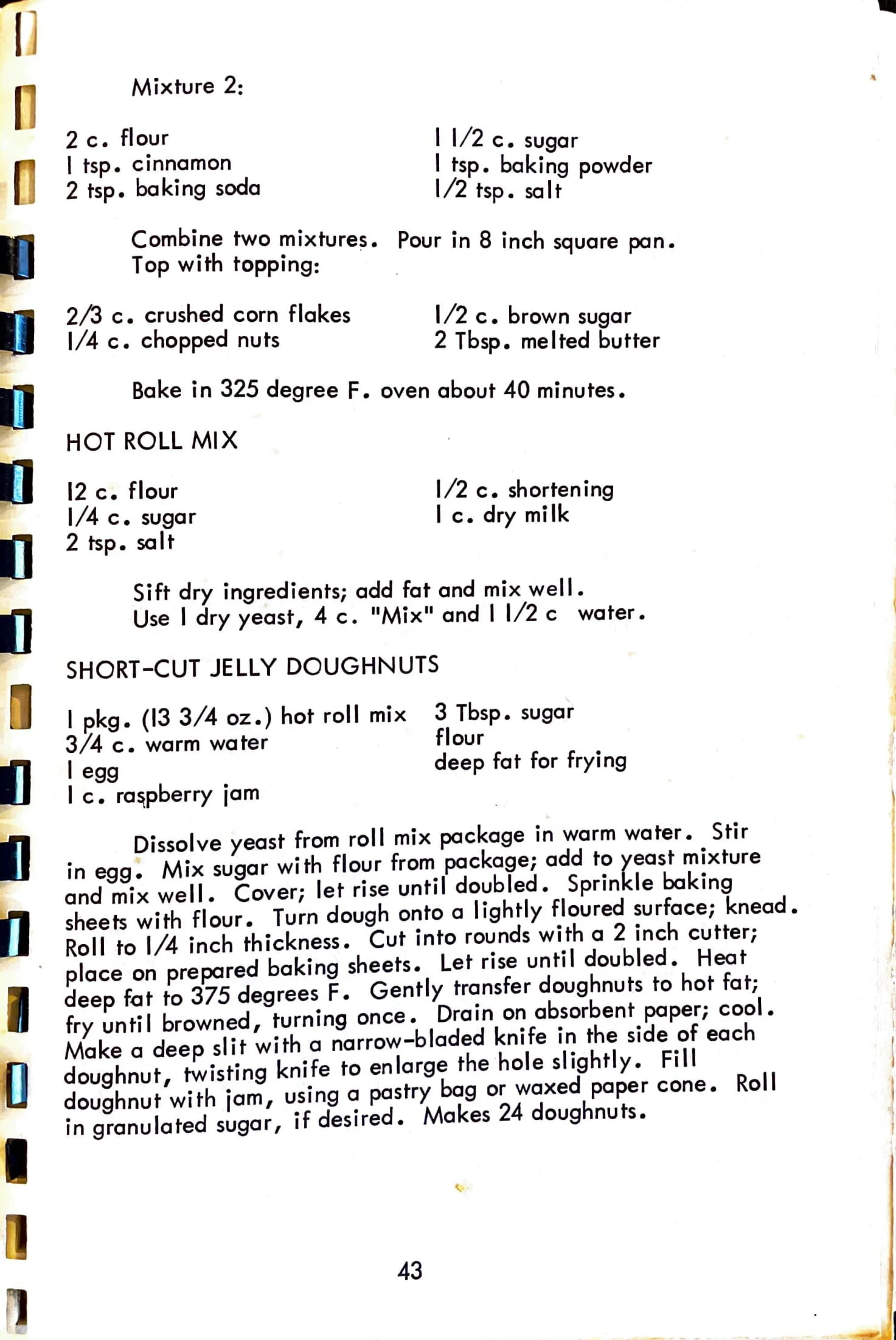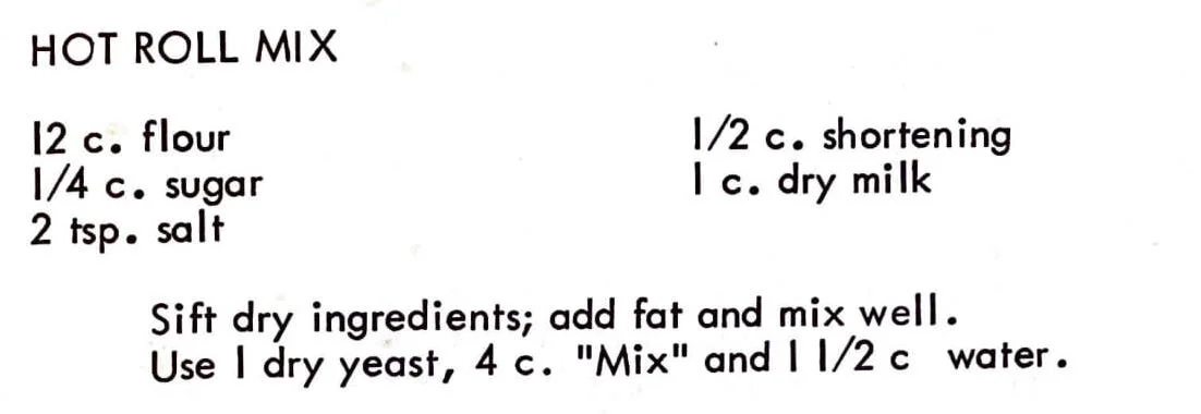 Scald – 3/4 cup milk Stir in – 1/4 cup sugar 2-1/4 tsp. salt 4-1/2 tbsp. shortening Cool to lukewarm.Measure into bowl — 3/4 cup warm (not hot) water.Sprinkle or crumble in — 1 package or cake yeast.Stir until dissolved. Stir in lukewarm milk mixture.Add — 2-1/4 cups sifted enriched flour.Beat until smooth.Stir in additional…