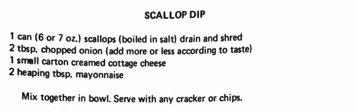1 can (6 or 7 oz.) scallops (boiled in salt) drain and shred