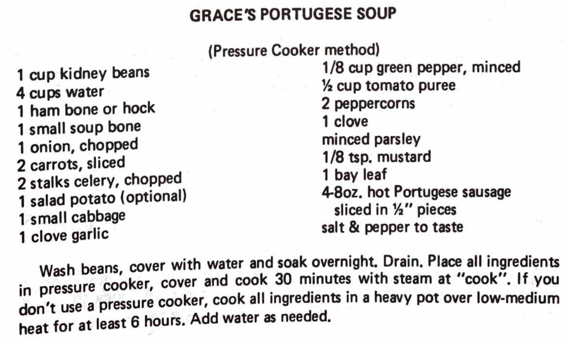 Grace’s Portuguese Soup (Pressure Cooker method)