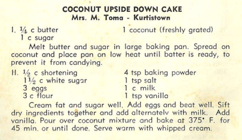 Single Recipe —— Double Recipe 1/4 lb. —— 1/2 lb. butter 1 cup —— 2 cups sugar 2 egg yolks —— 4 egg yolks 3/4 —— 1 can tomato sauce 2 whites —— 4 egg whites (stiffly beaten) 1-1/2 cups —— 3 cups flour 1/2 —— 1 tsp. cloves 1/2 —— 1 tsp. nutmeg 1/4…