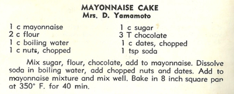 Preheat oven to 325 F 7 egg whites1/4 tsp. cream or tartar Stir until smooth:3/4 cup boiling water1/2 cup cocoa2 cups sifted flour1-3/4 cups sugar3 tsp. baking powder1 tsp. salt Make a well and add in order:1/2 cup Wesson Oil7 unbeaten egg yolksthe cocoa mixture1 tsp. vanilla1 tsp. red coloring if desiredBeat until smooth with…