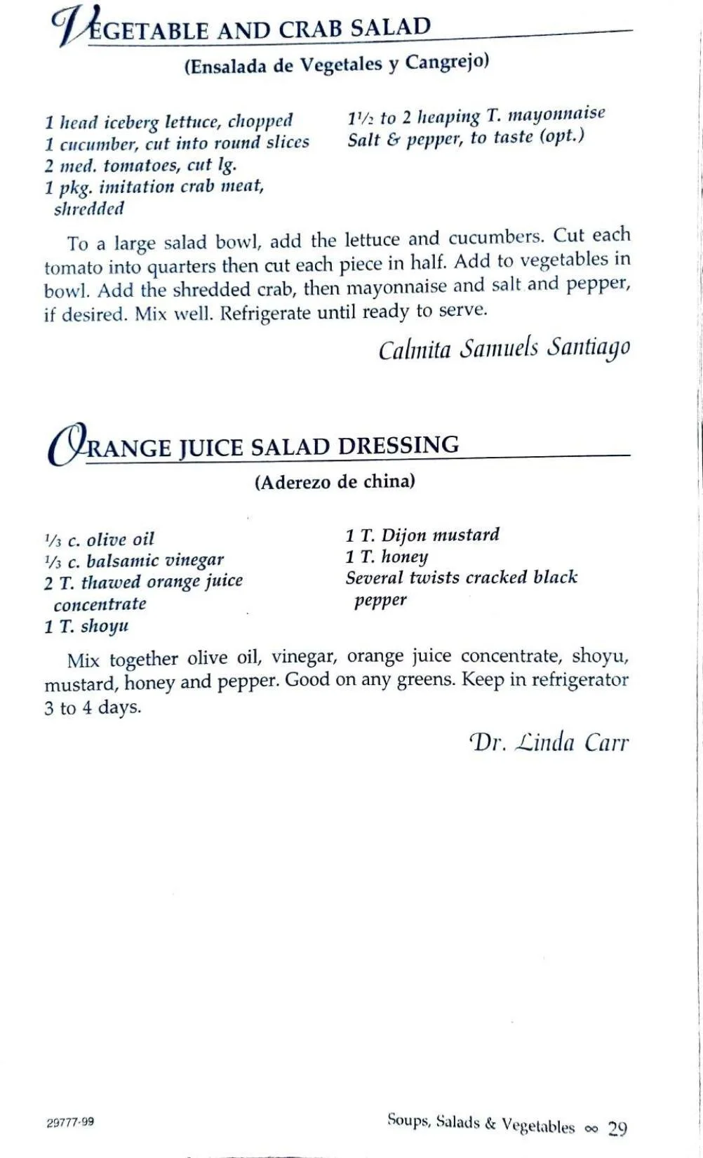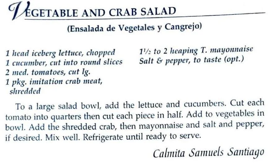 Vegetable and Crab Salad (Ensalada de Vegetales y Cangrejo)