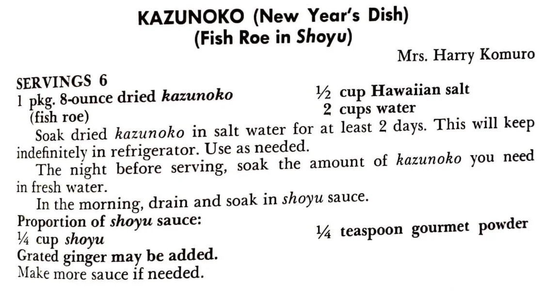 1 pkg. 8-ounce dried kazunoko (fish roe)