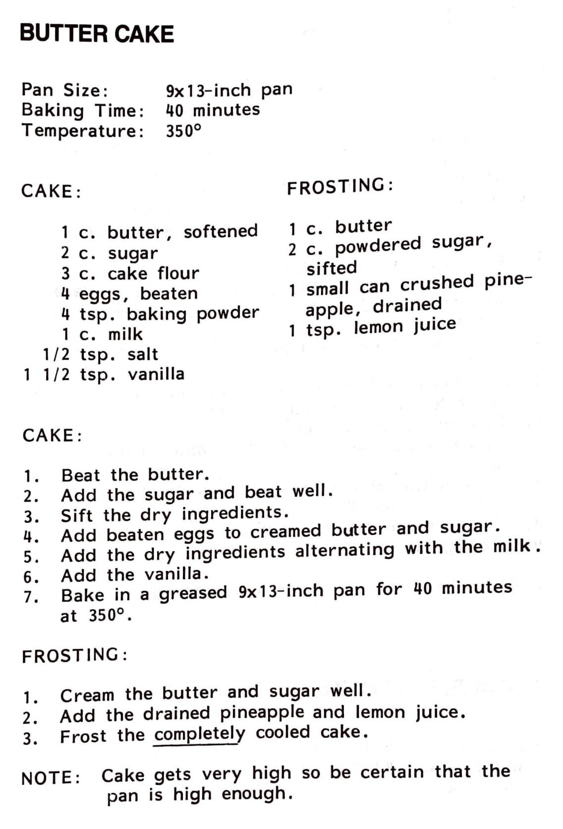 1 pkg. chocolate cake mix 2 eggs 1/4 c. oil 1/2 c. water or 7-Up 1 can cherry pie filling 1 tsp. almond extract sifted powdered sugar Mix cake mix, eggs, oil and water. Fold in cherries. Bake in 325 degree oven for 45-60 minutes. When warm, sprinkle with sifted powdered sugar.