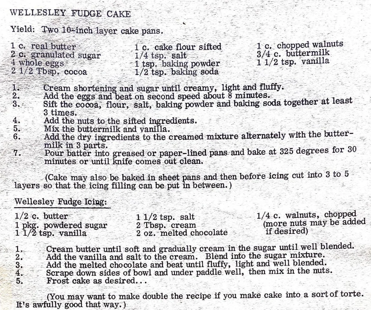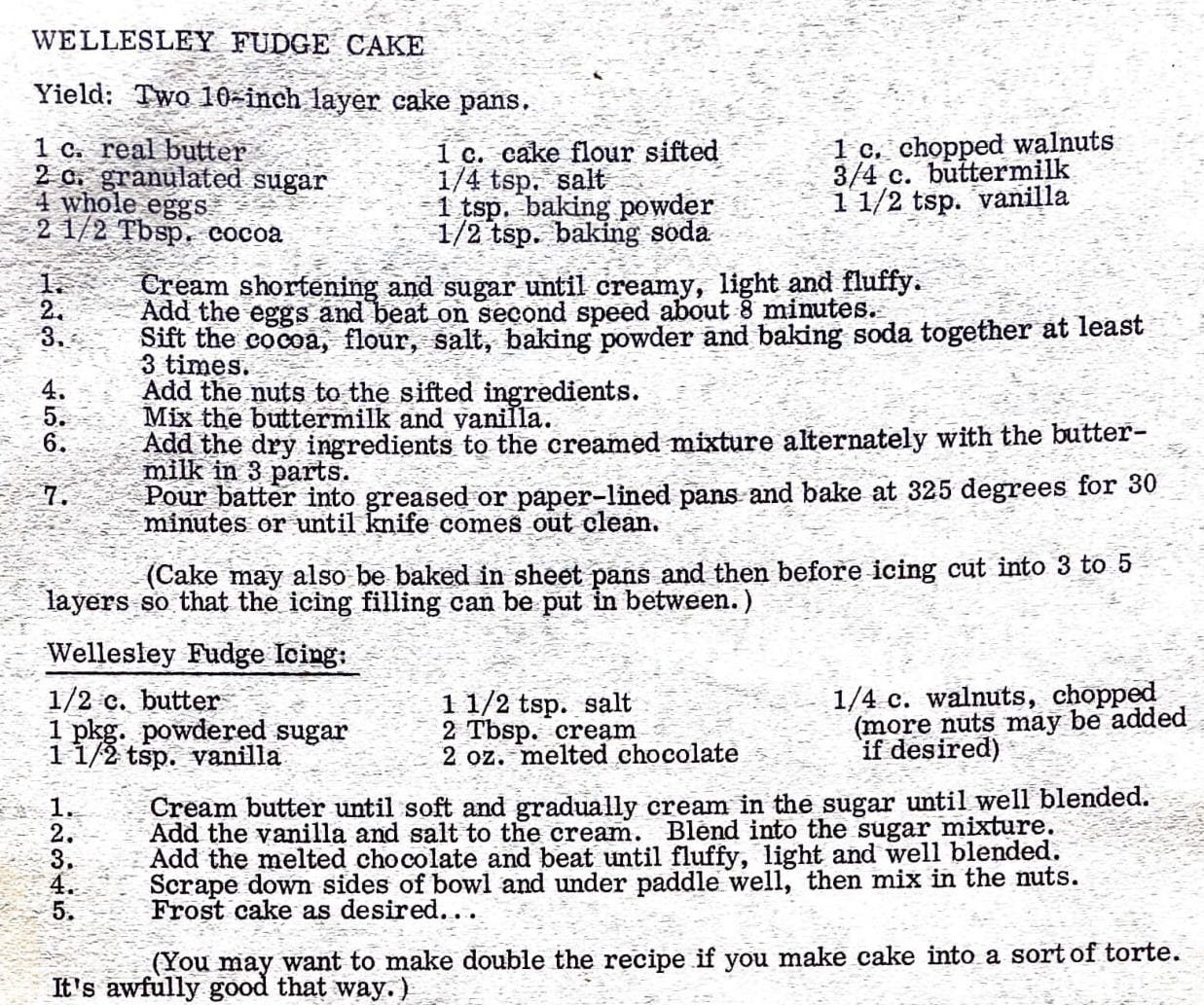 Wellesley Fudge Cake