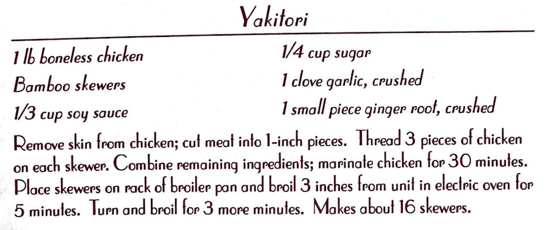 1 chicken – 3# dressed1 cup soyu1 cup water1 piece ginger1/2 cup brown sugar2 cloves garllc1 tsp wine In large sauce pan mix sugar with soyu. Heat about 2 tbsp. oil in frying pan and add ginger and garlic; fry whole chicken till slightly browned; add wine then place chicken into the soyu-sugar mixture. Cover…