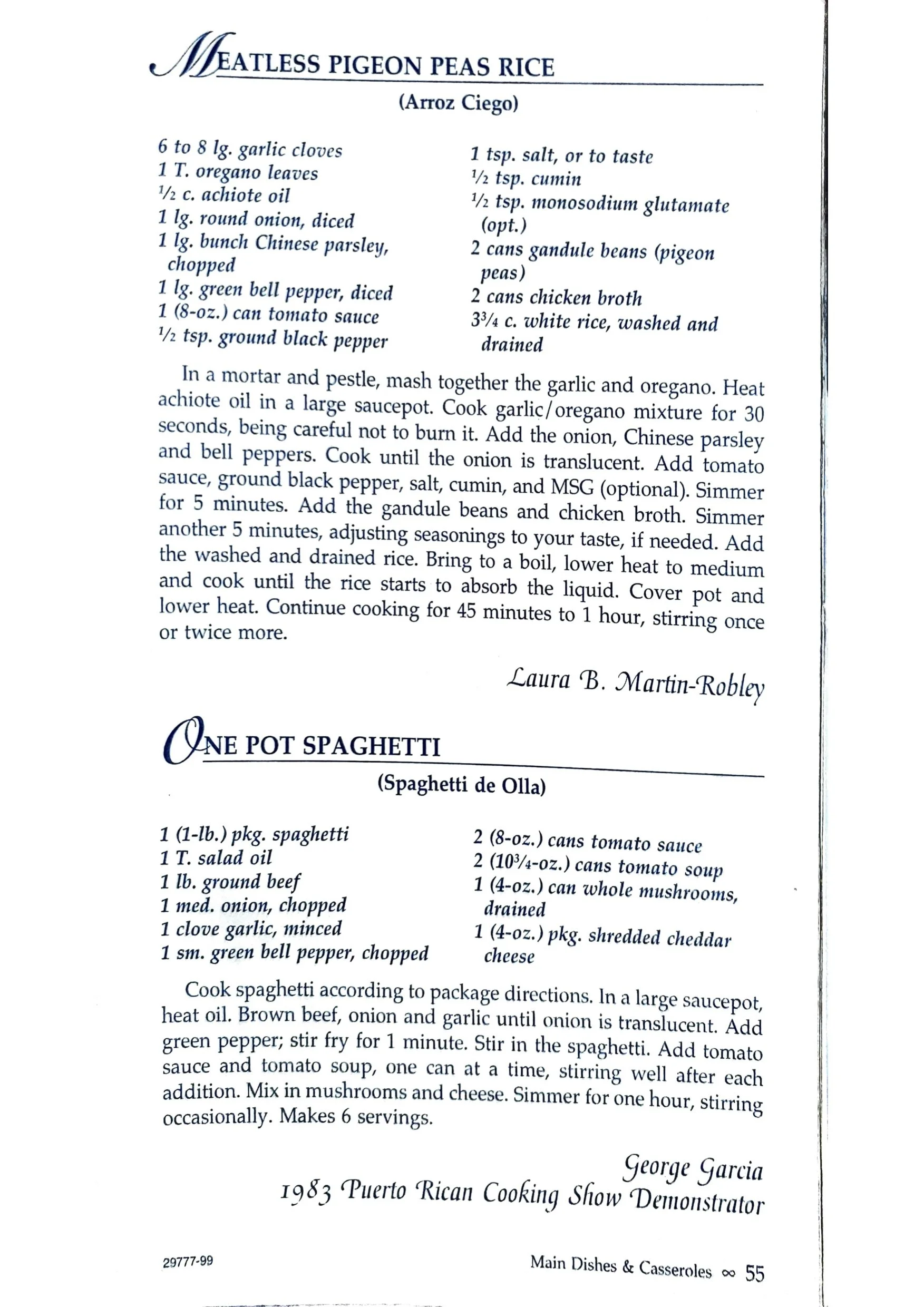 In a mortar and pestle, mash together the garlic and oregano. Heat achiote oil in a large saucepot. Cook garlic/oregano mixture for 30 seconds, being careful not to burn it. Add the onion, Chinese parsley and bell peppers. Cook until the onion is translucent. Add tomato sauce, ground black pepper, salt, cumin, and MSG (optional). Simmer for 5 minutes. Add the gandule beans and chicken broth. Simmer another 5 minutes, adjusting seasonings to your taste, if needed. Add the washed and drained rice. Bring to a boil, lower heat to medium and cook until the rice starts to absorb the liquid. Cover pot and lower heat. Continue cooking for 45 minutes to 1 hour, stirring once or twice more.