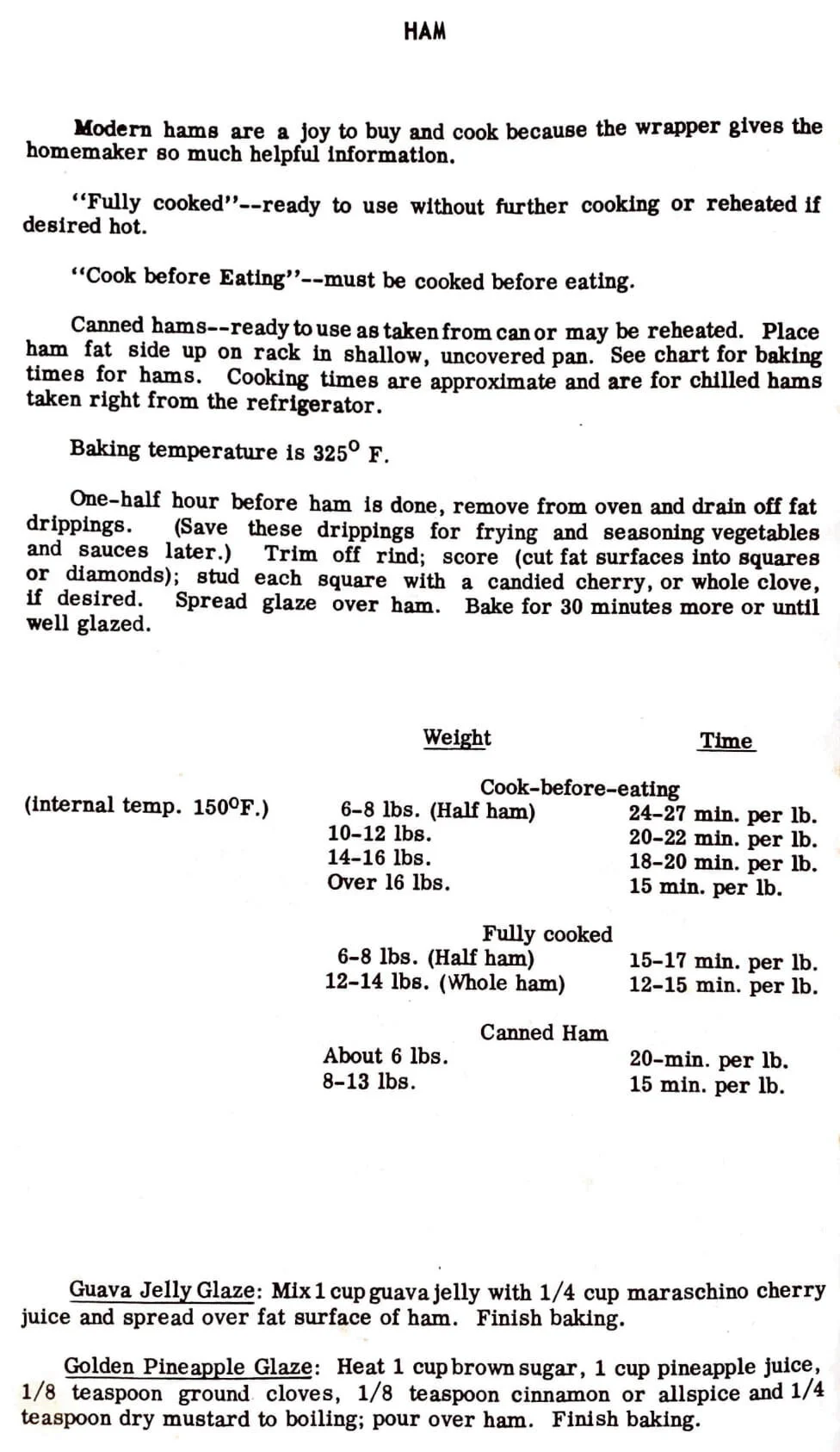 Modern hams are a joy to buy and cook because the wrapper gives the homemaker so much helpful Information.